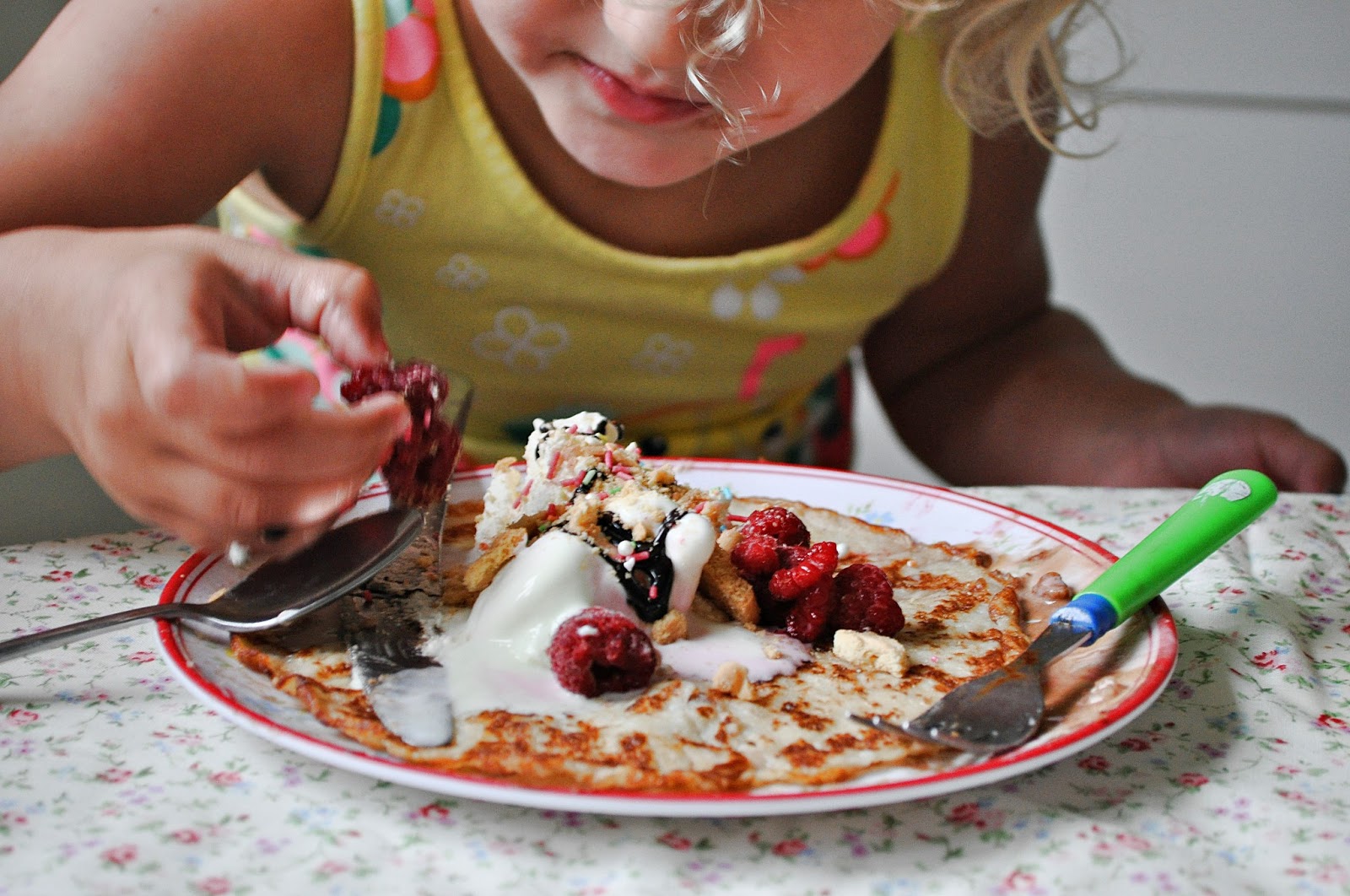 Vilket kalas! Pannkaka är gott och med allt det färgrika och vackra så smakar det nog underbart.